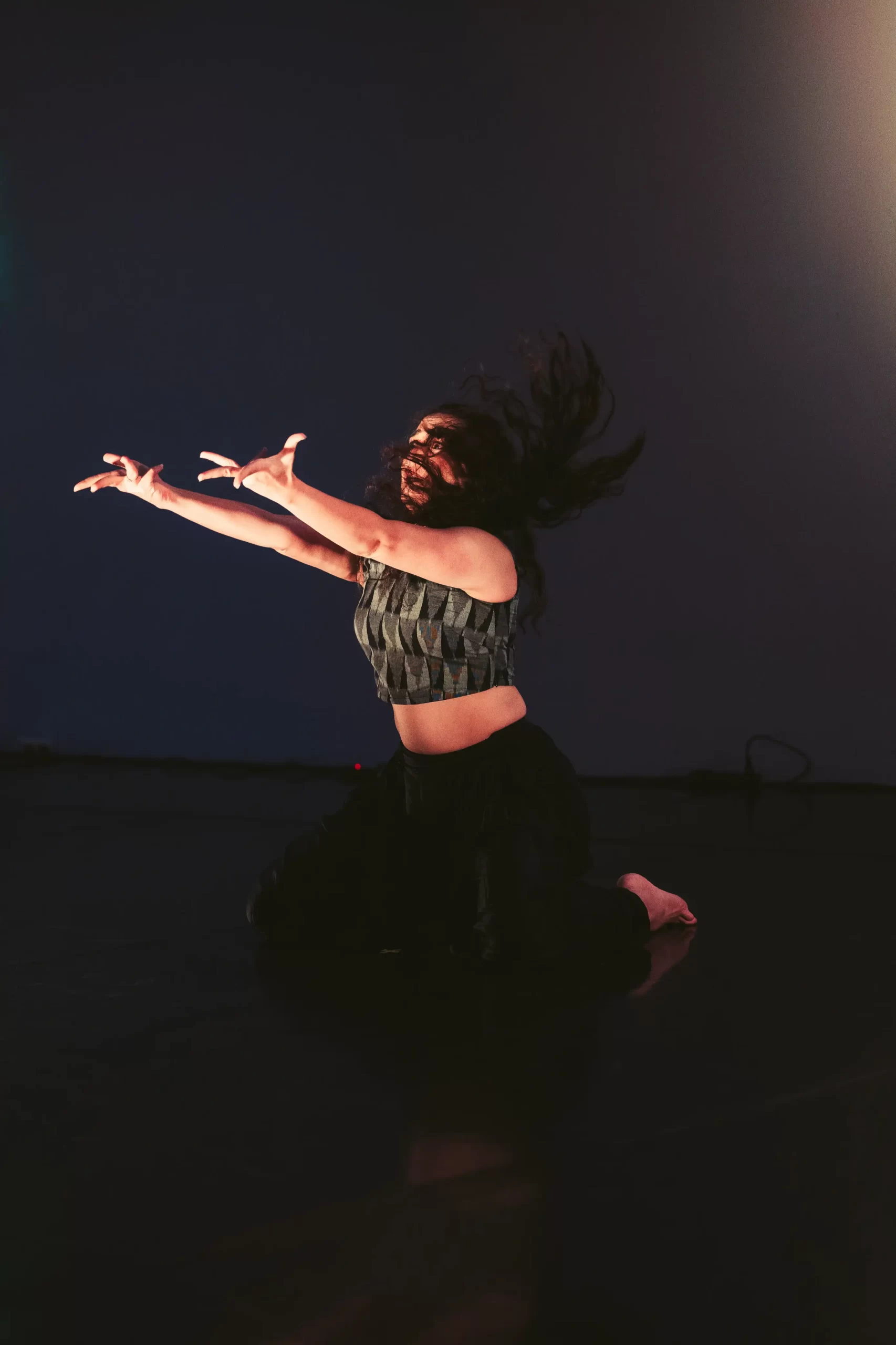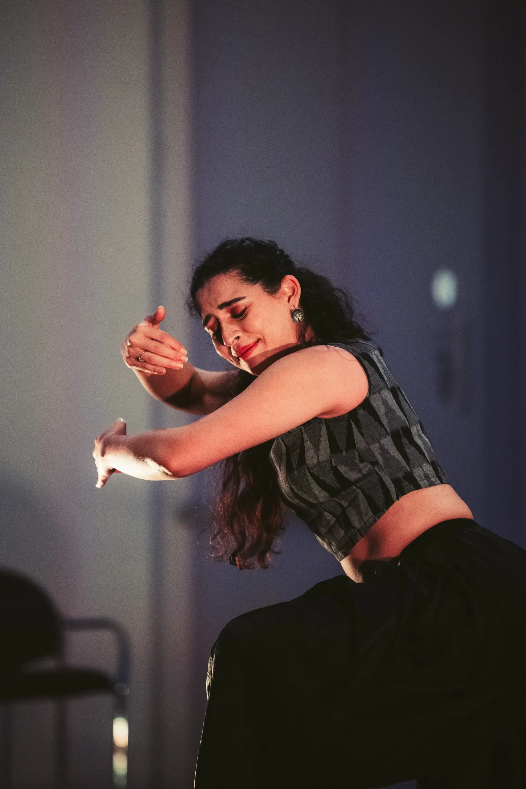 An original work created by Radhika as an artist in residence for Disco Riot’s SPACE Pro Residency. It is an amalgamation of Bharatanatyam, Haiku and Tanka, live music, animation and projection. This was a site specific performance.
