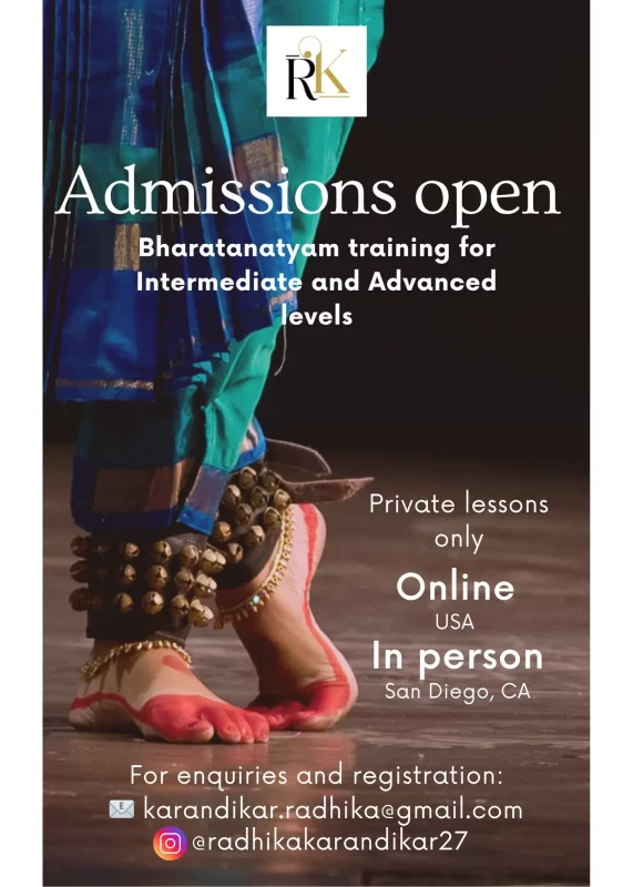 With over a decade of teaching experience in both India and the USA, Radhika is deeply passionate about nurturing the next generation of dancers. Currently based in San Diego, she serves as a faculty member at the Abinaya Arts Academy, founded by Aler Krishnan. Here, she works closely with young students, introducing them to the joy and discipline of Indian classical dance. Her focus on building a strong foundation enables even the youngest learners to connect meaningfully with the art form.